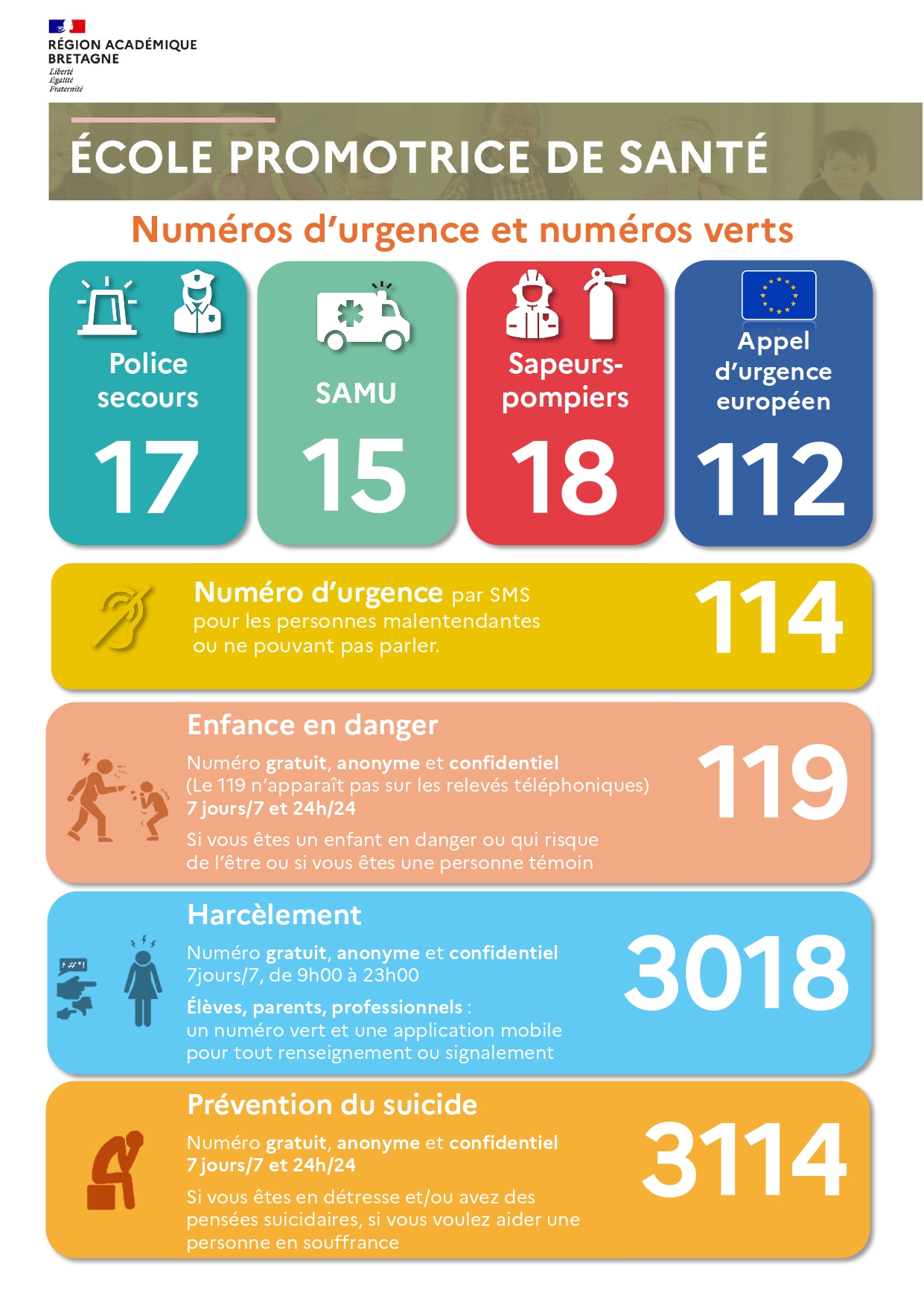 - 3114 – Prévention du suicide (24/7)
